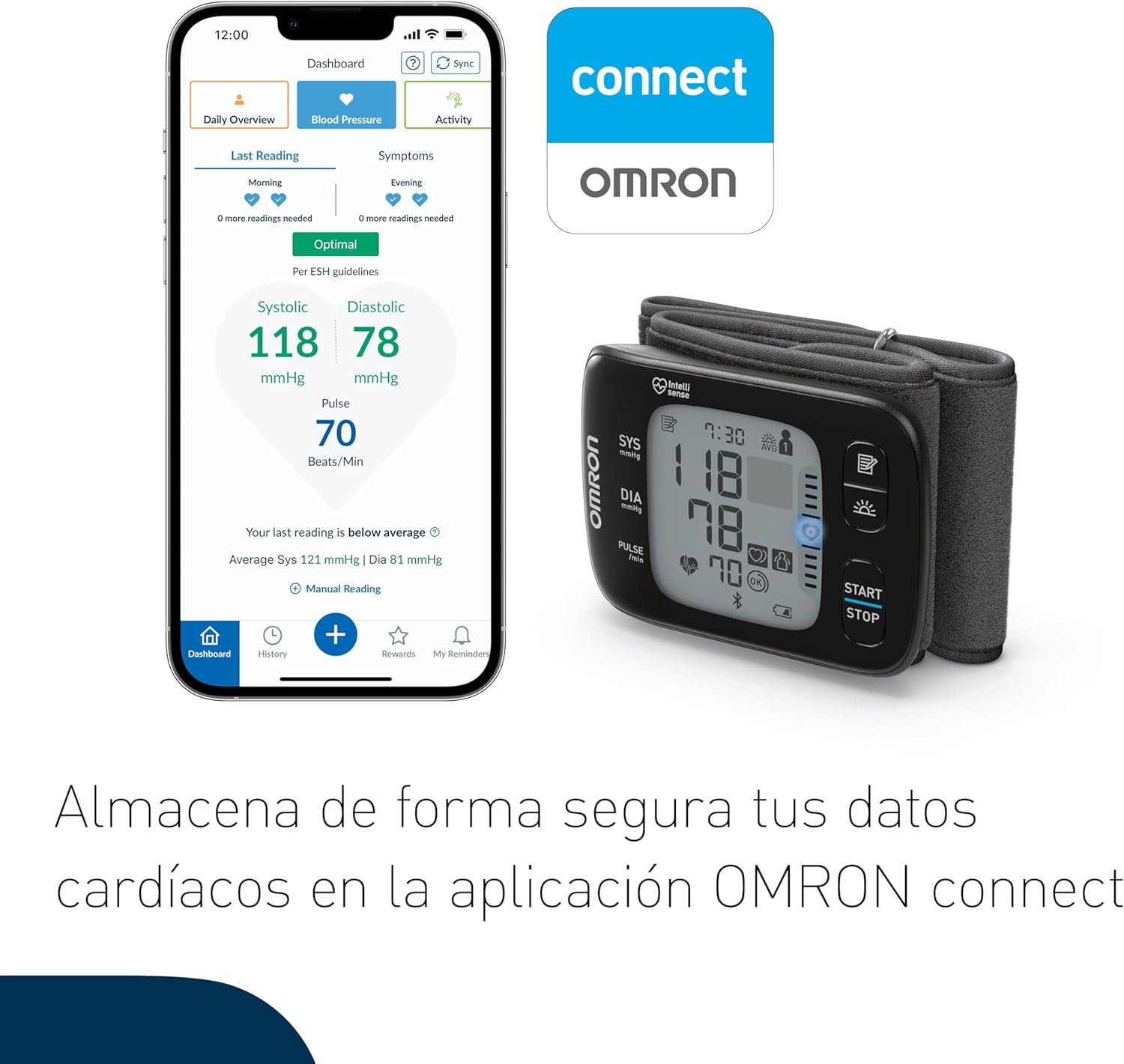 • Compatible con app OMRON connect → registra, grafica y comparte datos de tensión.