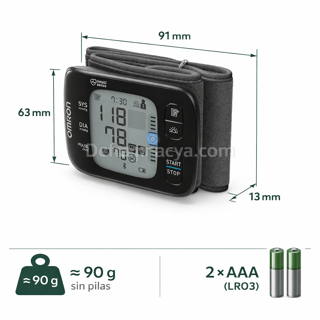 Desde el punto de vista farmacéutico, el Omron RS7 Intelli IT representa uno de los tensiómetros de muñeca más avanzados y fiables disponibles actualmente para el control domiciliario de la presión arterial. Su principal valor clínico es la incorporación del sensor de posicionamiento cardíaco, una tecnología que guía al usuario para situar la muñeca exactamente a la altura del corazón, reduciendo uno de los errores más frecuentes en la medición con dispositivos de muñeca.